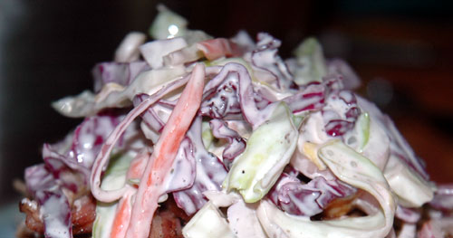 The cell walls break down, releasing moisture. This makes your salad, whether it’s a green salad or coleslaw, watery and mushy.